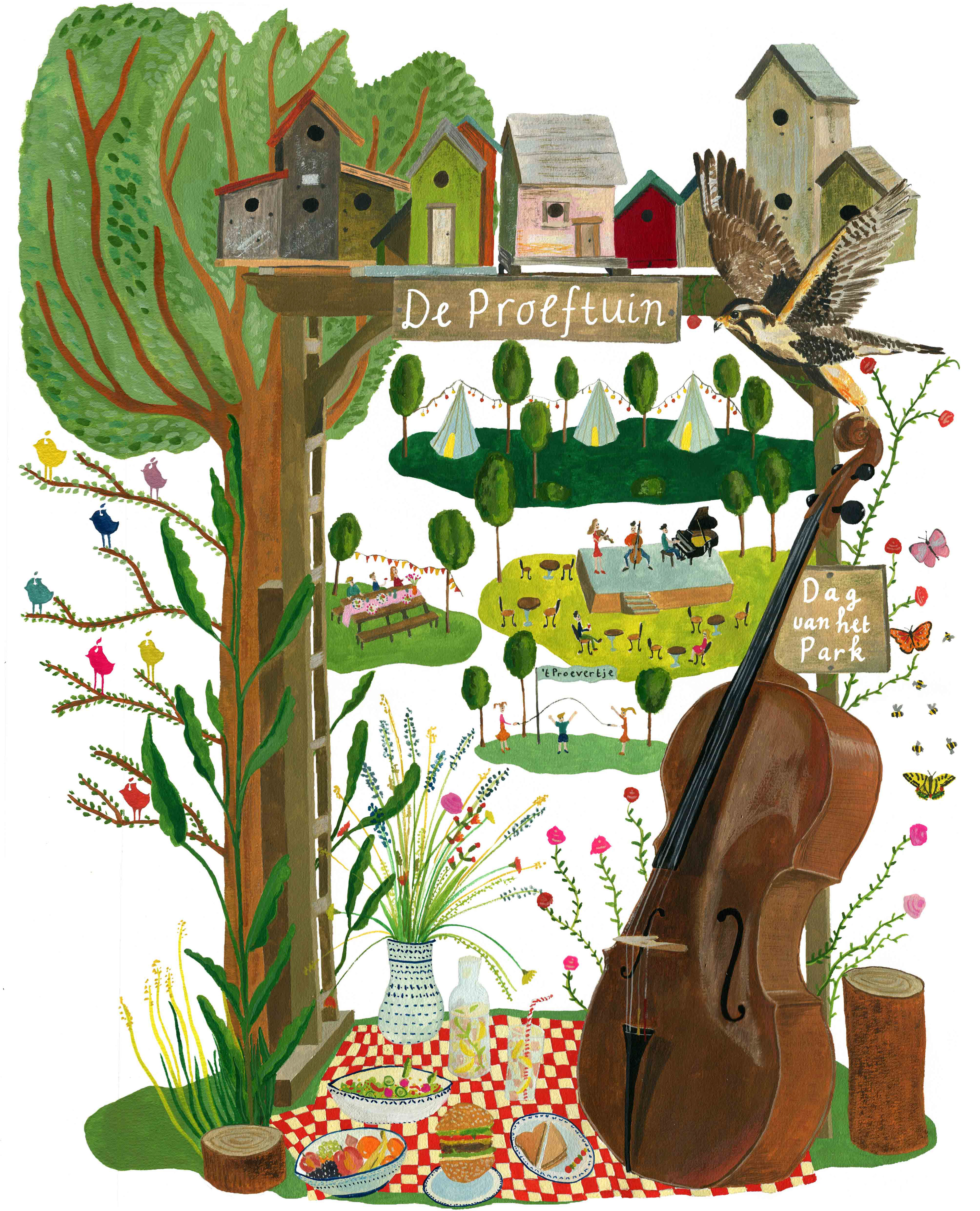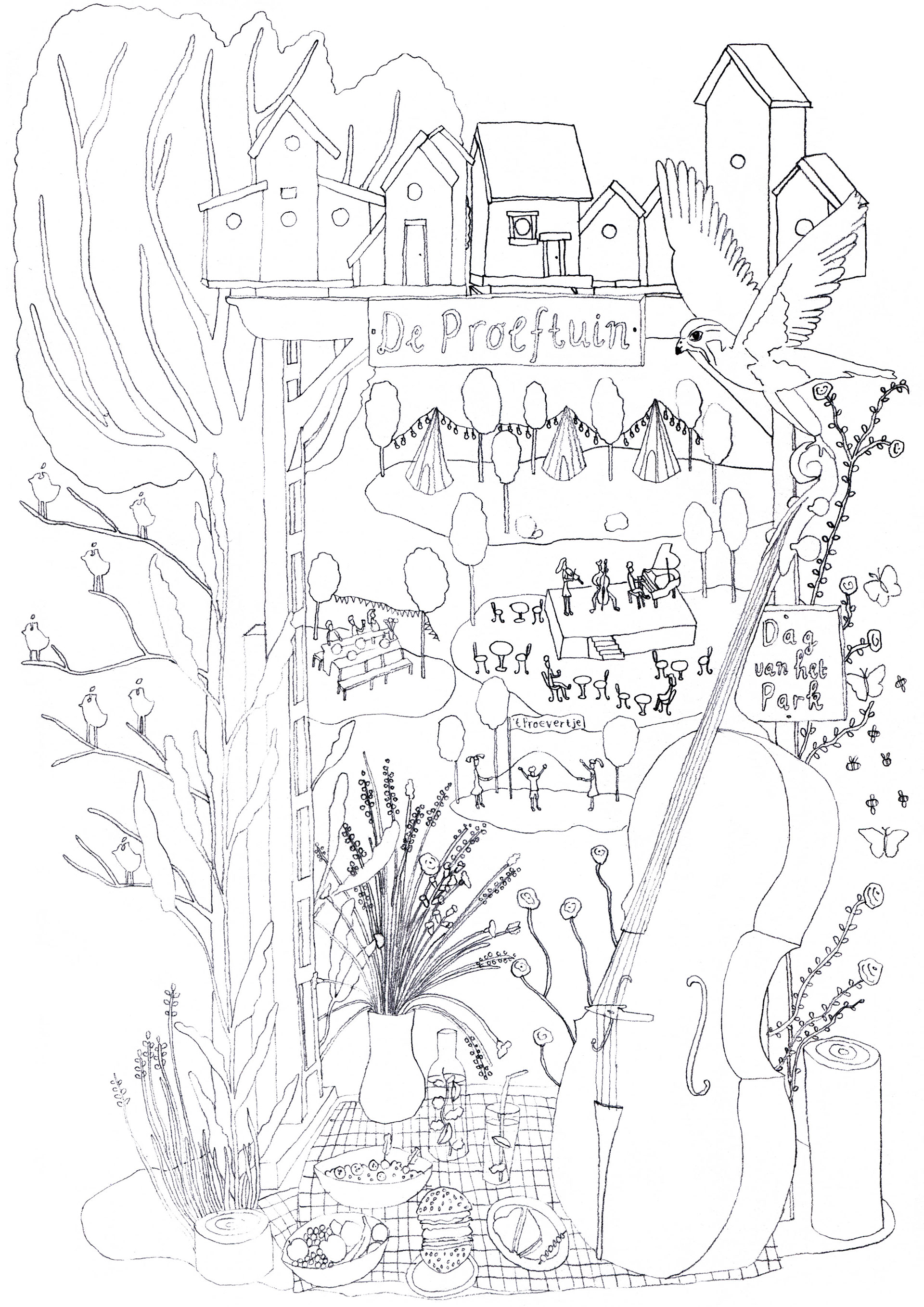 Work I made for the classical music festival Oranjewoud. An illustration for posters, flyers, etc, a save-the-date and a colouring picture.