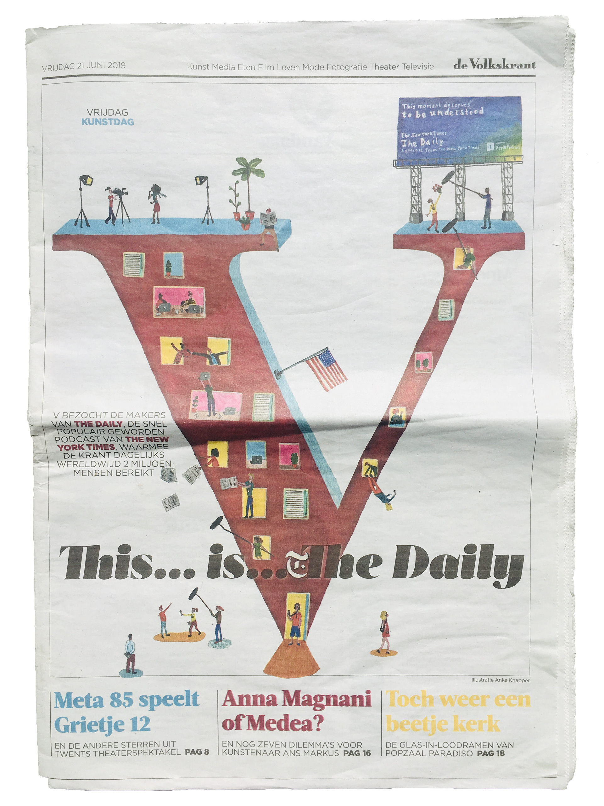 Cover illustration for the culture section of Dutch newspaper de Volkskrant about the Daily podcast