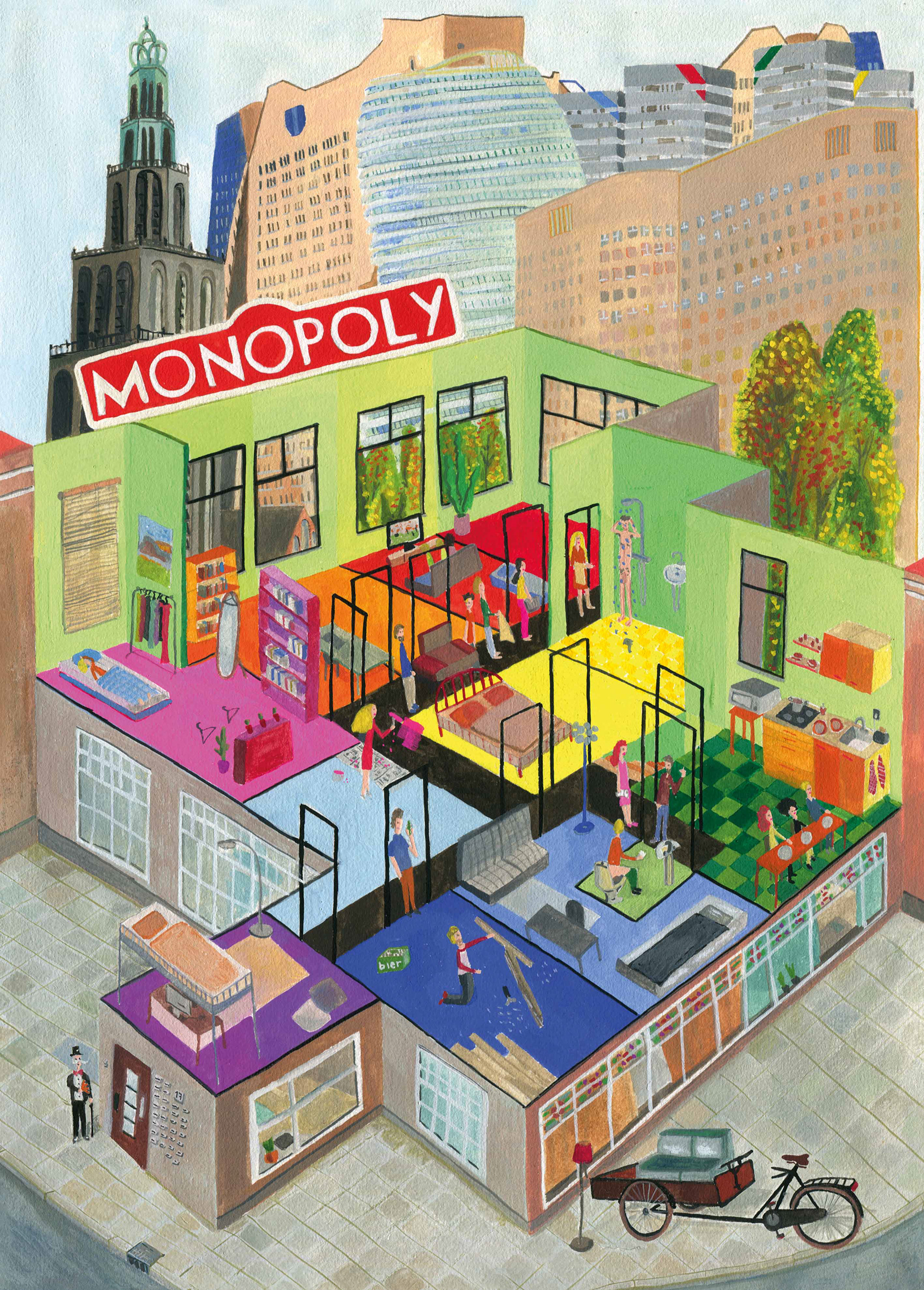 Illustration for the student magazine Hanzemag for an article about student housing and landlords.