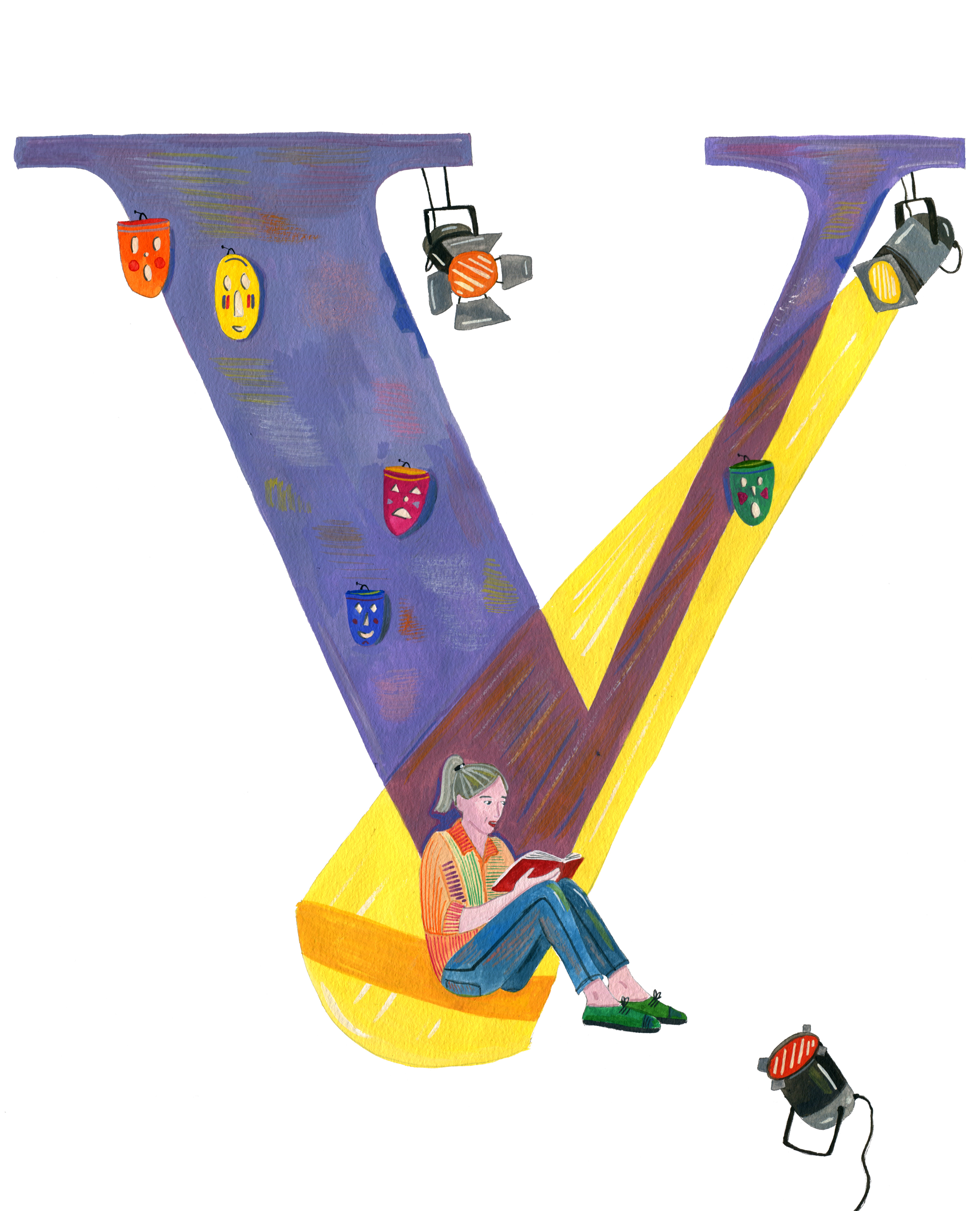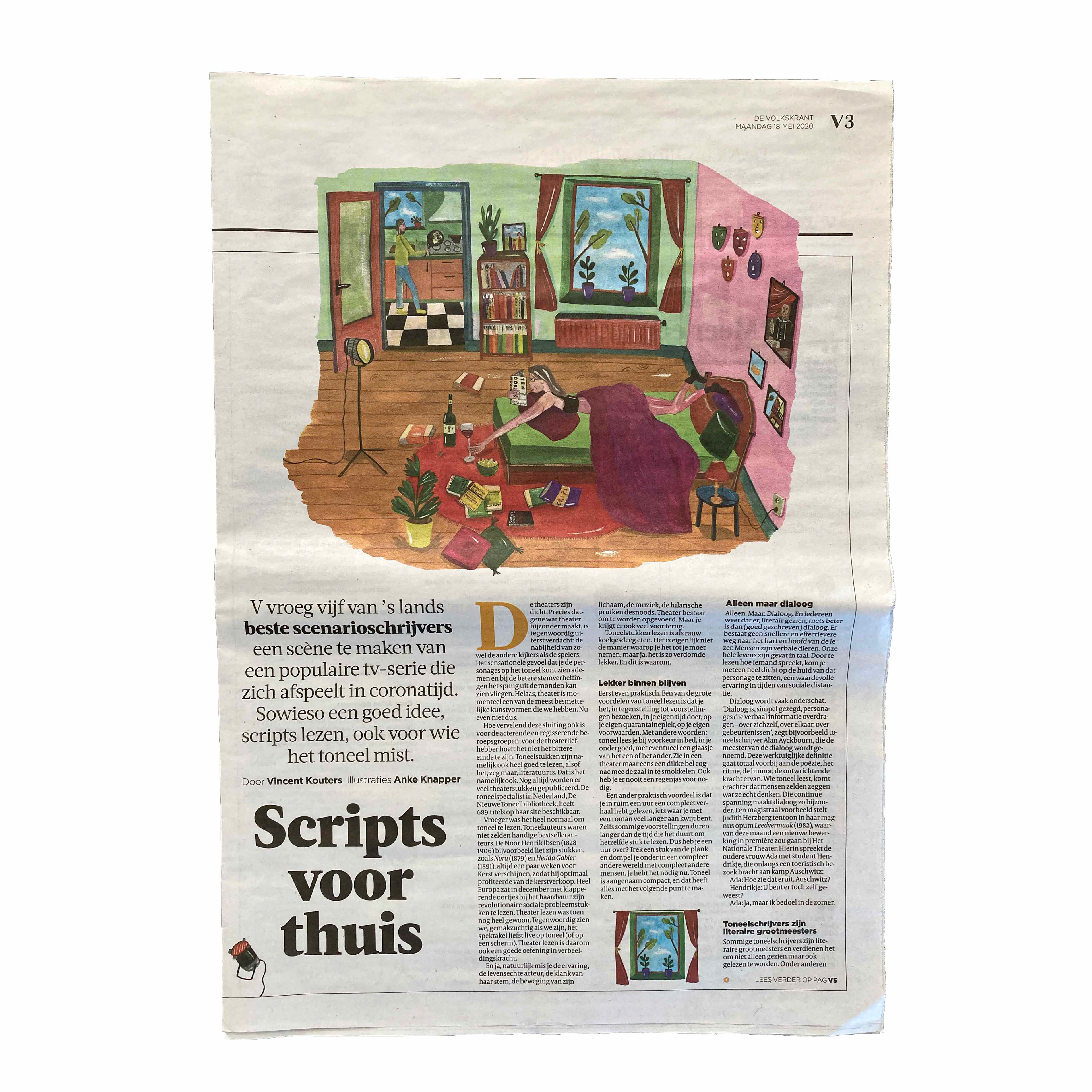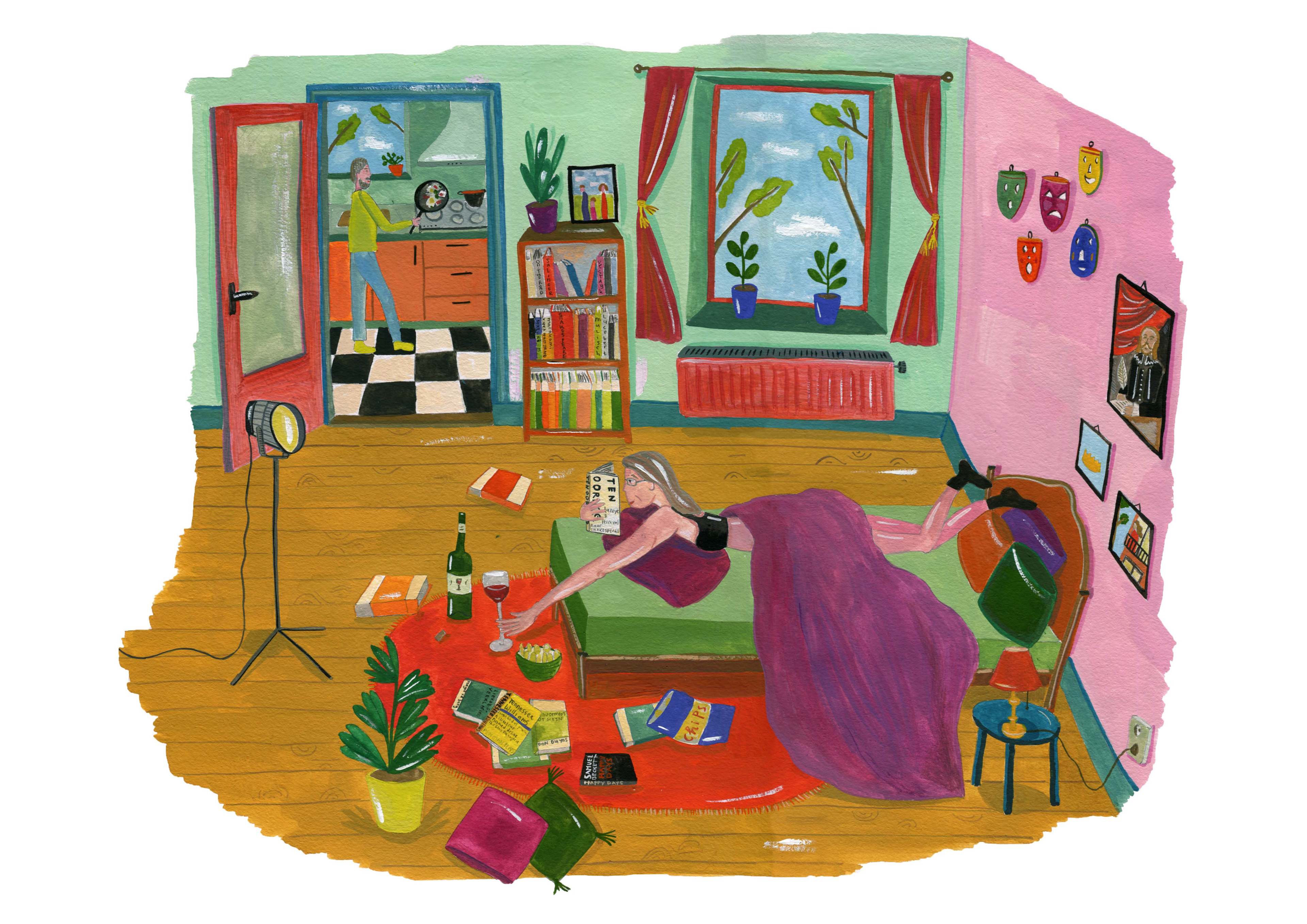 Illustrations about theatre and reading a play at home in Corona-times
