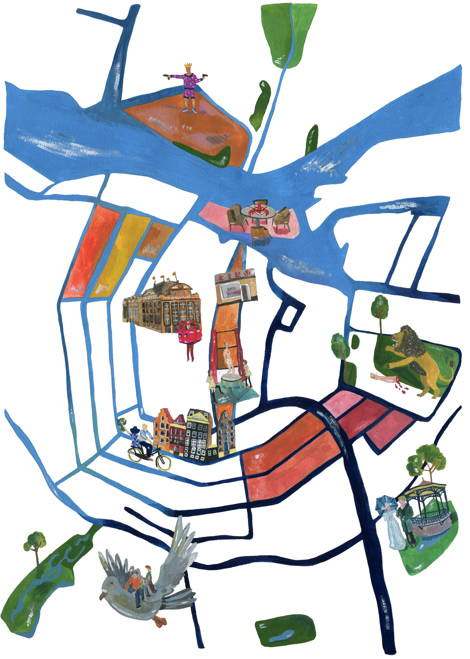 Maps of the Netherlands and Amsterdam with important movie locations of Dutch movies. Made for newspaper de Volkskrant for an article about NFF