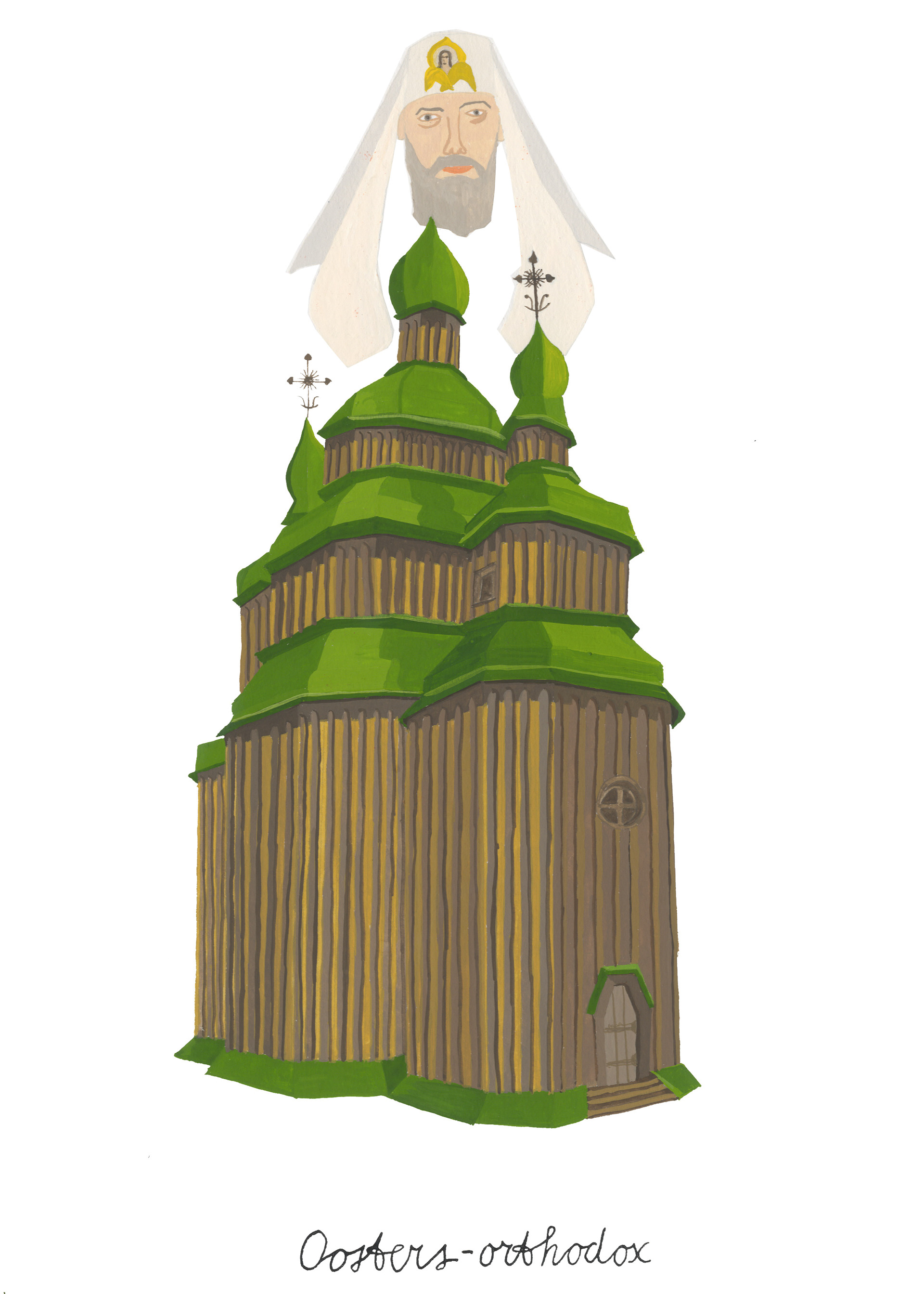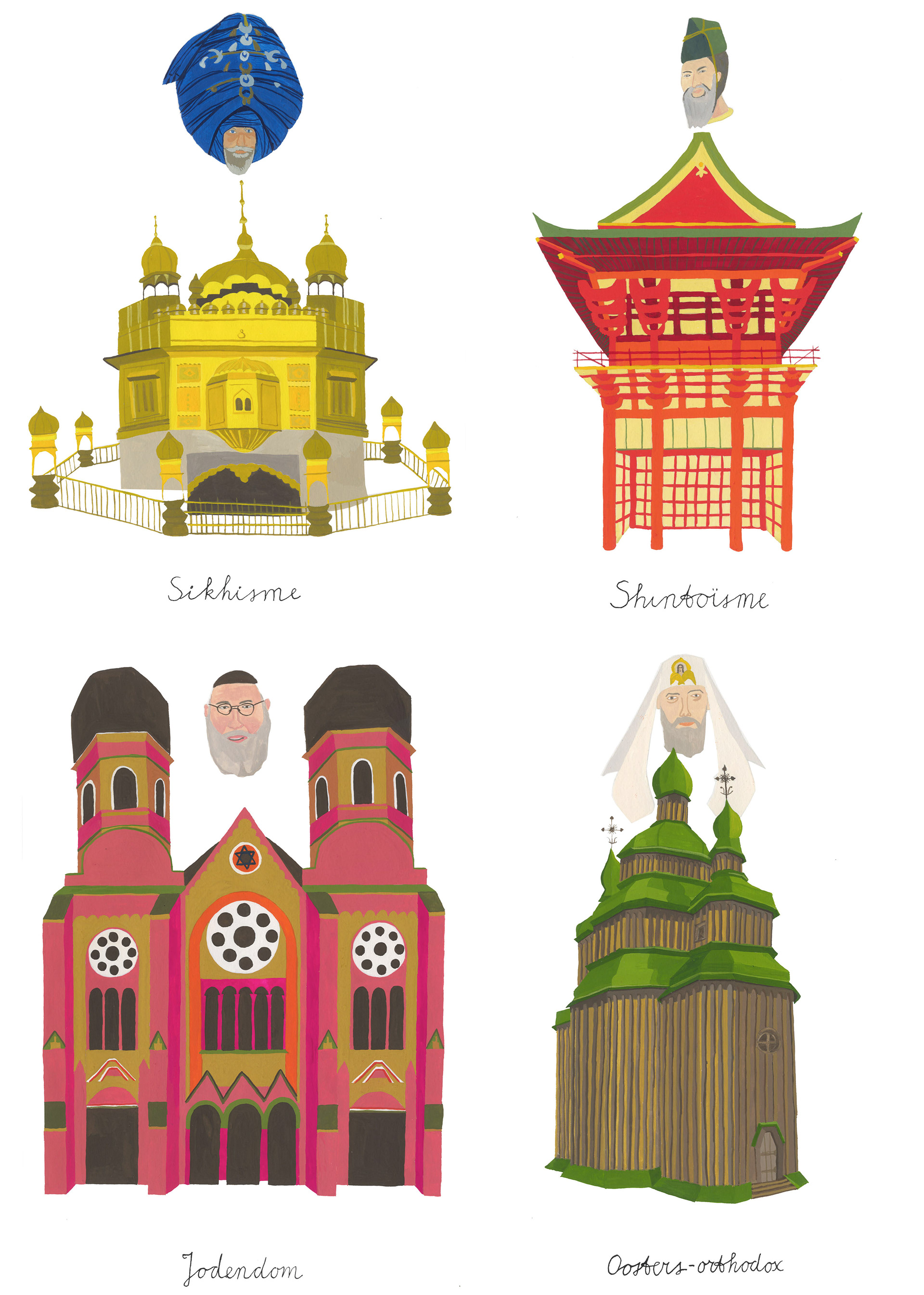 Project where I illustrate the different buildings of several religions accompanied by their most important figures.