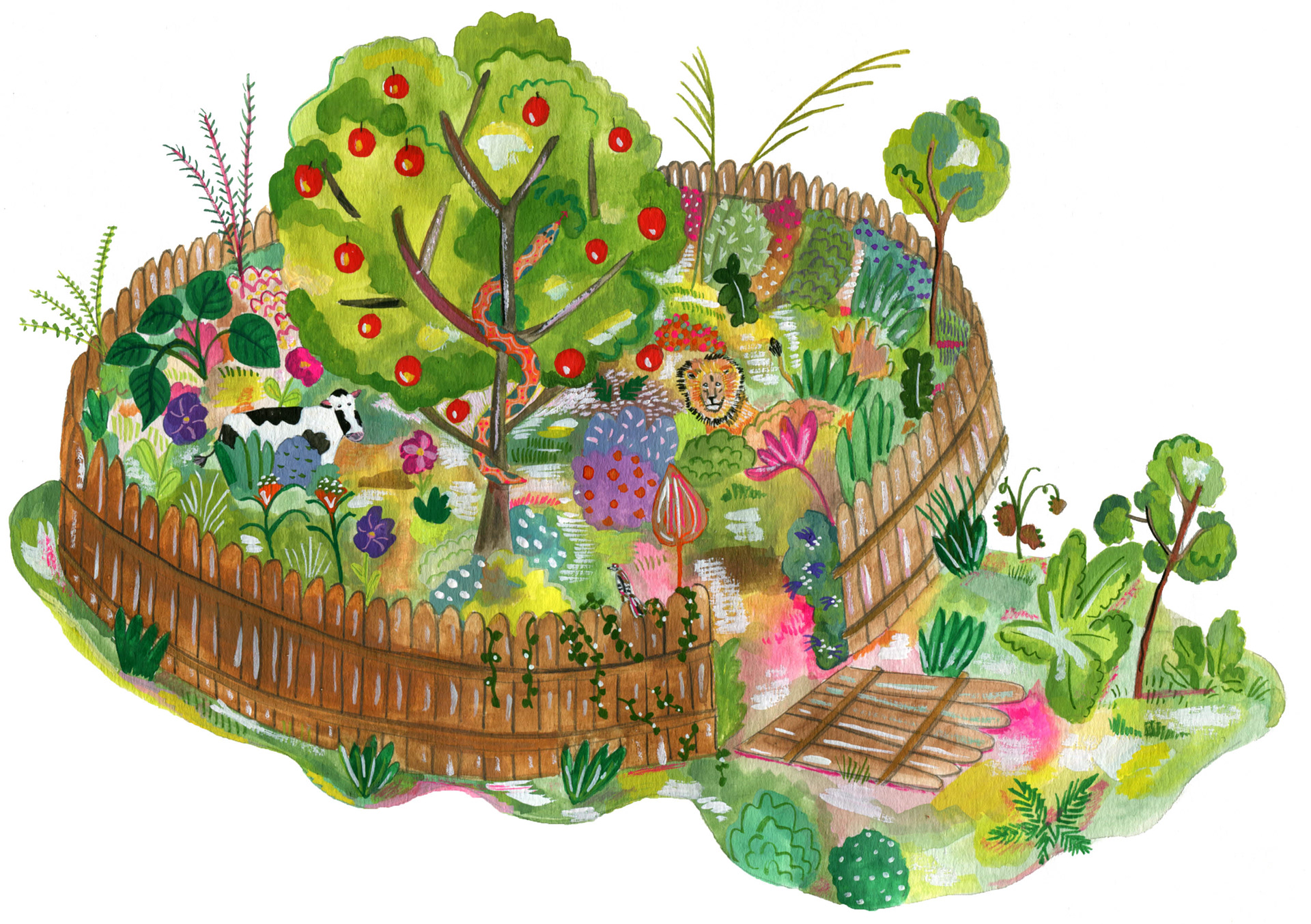 Illustration for magazine Visie (EO) for an article about walls and fences in the city, in gardens and in life.
